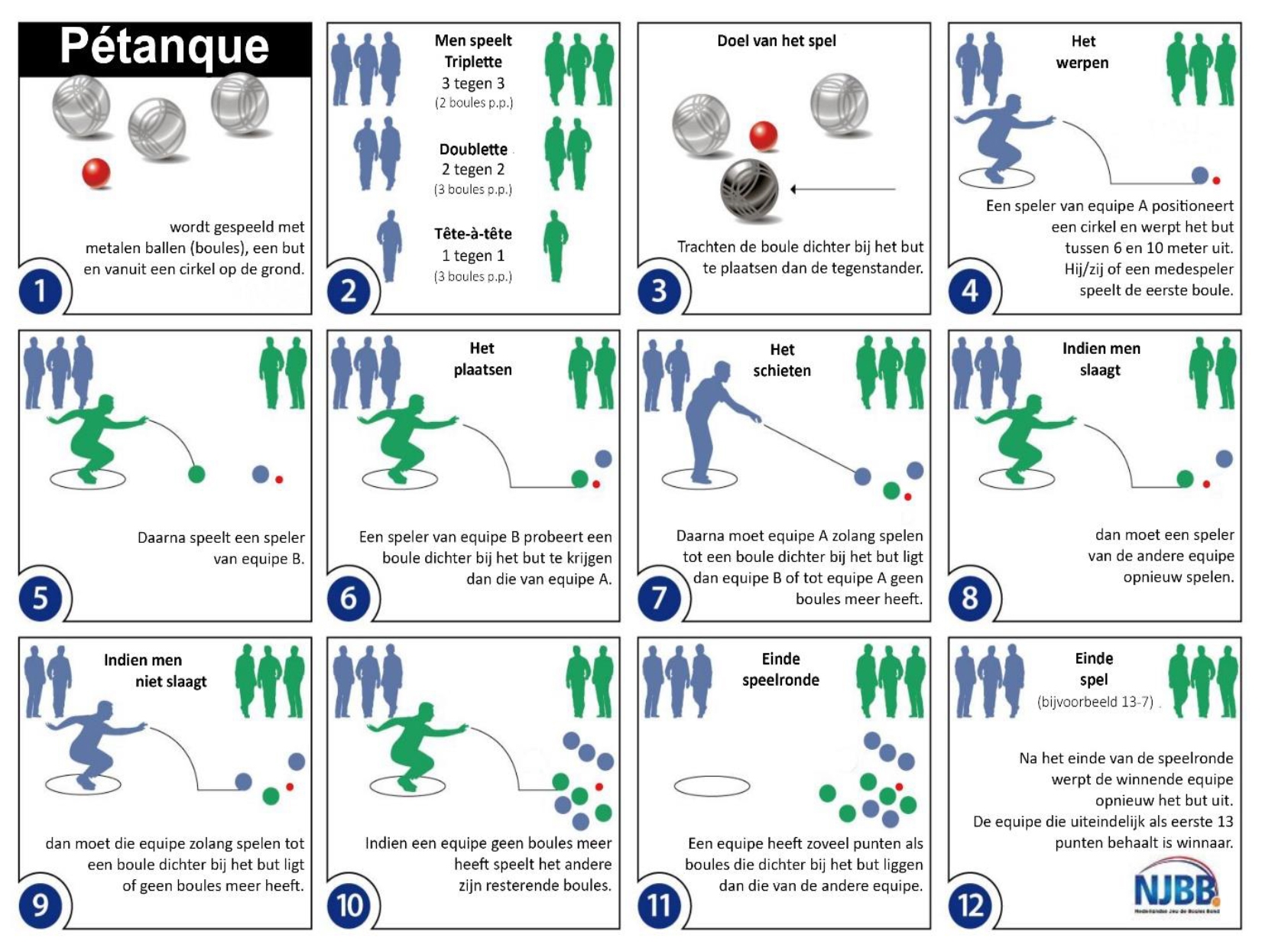 - Als alle boules gespeeld zijn, krijgt het winnende team net zoveel punten als het aantal boules dat beter ligt dan de beste boule van de tegenpartij.